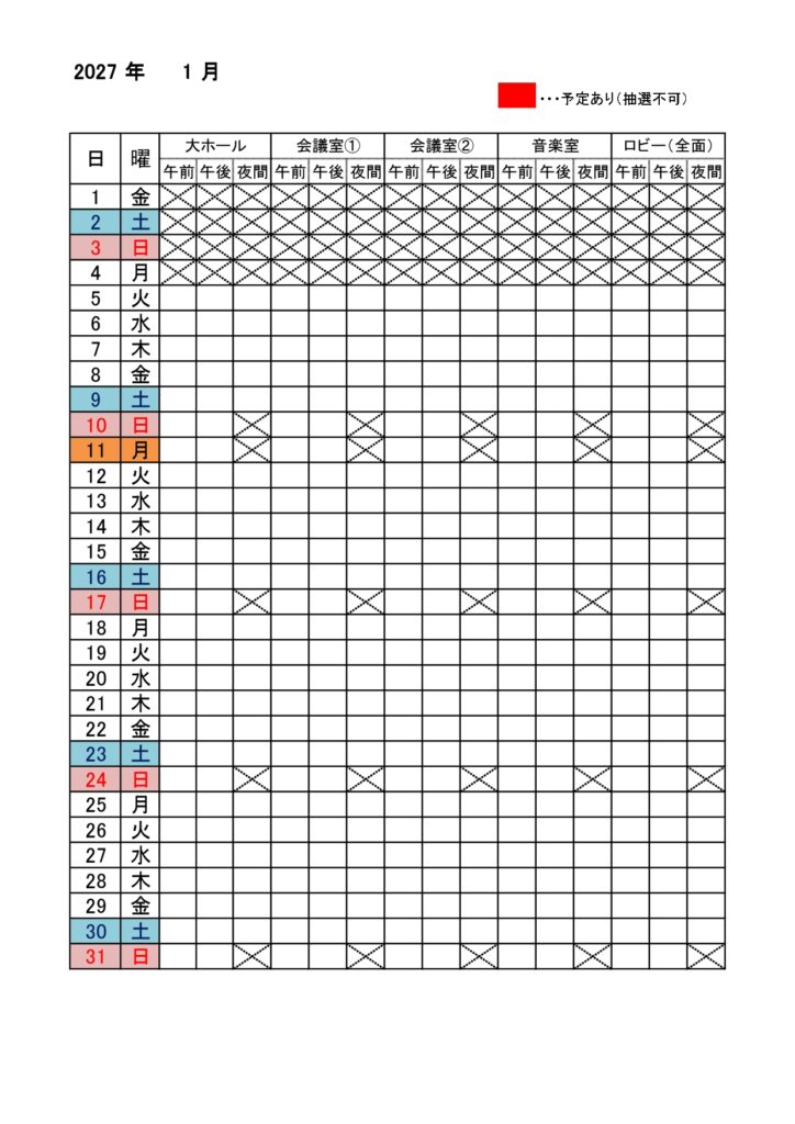 【抽選対象】大ホール 2027年1月分 (2区分以上利用)